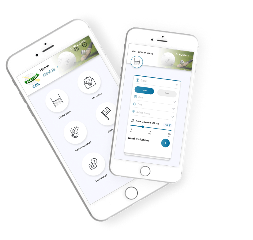 PlayUs GAA is a system that has been designed to facilitate all GAA, LGFA and Camogie teams to search for and arrange challenge games, tournaments and blitzes. Once your admin panel is setup, coaches seeking to organise games can simply use our app to enter the proposed game details, invites will be sent out automatically to appropriate teams within a designated distance. PlayUs is a very useful tool for clubs and will provide more games for club players.