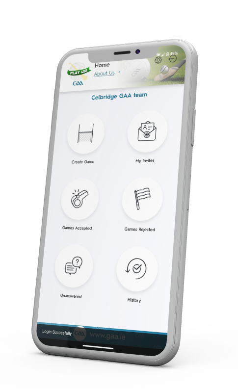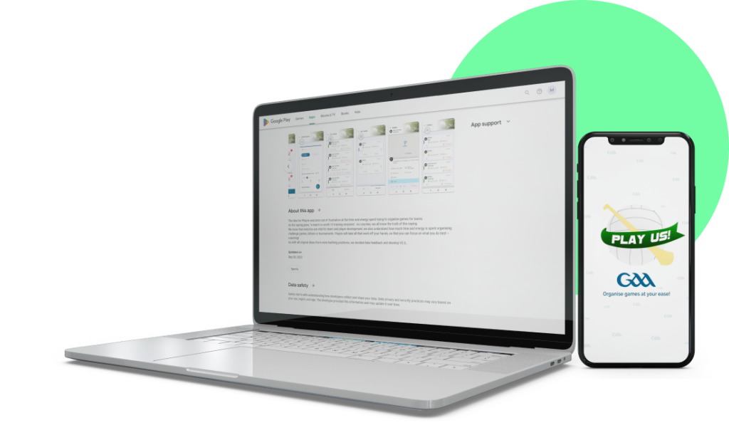Select the ‘PlayUs GAA’ app with the official PlayUs logo.